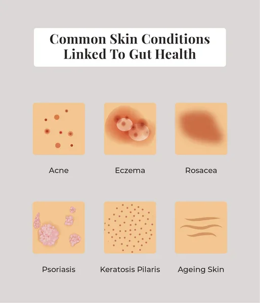 A balanced gut supports hydration, immunity, and skin repair. Dysbiosis increases inflammation that drives breakouts, irritation, and early ageing. Diets high in sugar accelerate glycation where sugar molecules attach to collagen and make skin stiff, weak, and prone to wrinkles. Alcohol, poor sleep, and processed foods increase oxidative stress and slow healing.